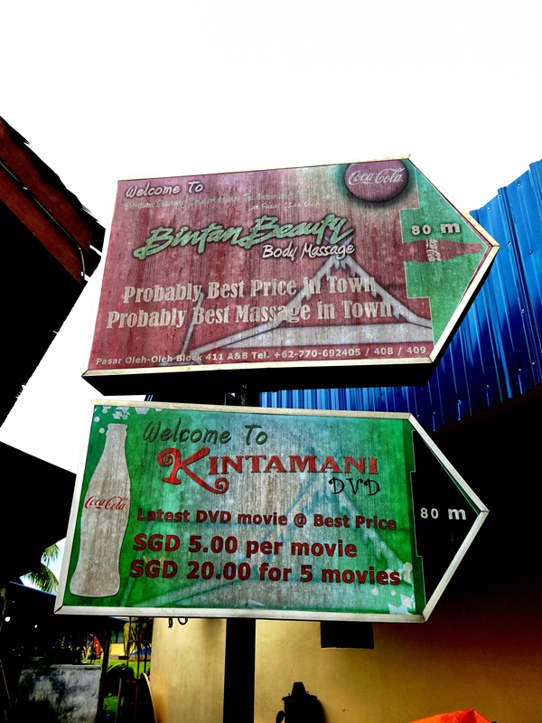 Sadly to say, while Bintan may have beautiful beaches for one to have a really relaxing vacation, it is not a place where you can find fantastic shopping, if any for that matter. Possibly the only market that's nearby is the Pasar Oleh Oleh. It's also the best place for you to get the touristy stuffs such as Bintan T-shirts, souvenirs, magnets, etc, or do massages. There're two restaurants there, so if you want to have cheap food rather than expensive resort & hotel fare, this is the place to check out. All resorts & hotels provide the shuttle service to Pasar Oleh Oleh at a price of $6/adult, $4/kid.