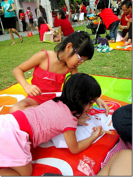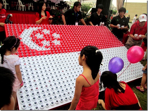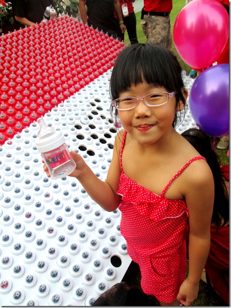 One of the interesting highlights of the event was the forming of the Singapore Flag with milk bottles! This is the first to be done in Singapore, and they are setting a new record in the Singapore Guinness Book Of Records that day. The bottles were provided by one of the sponsors - Avent, and every bottle contained a message written by the mums about their wishes for their kids.