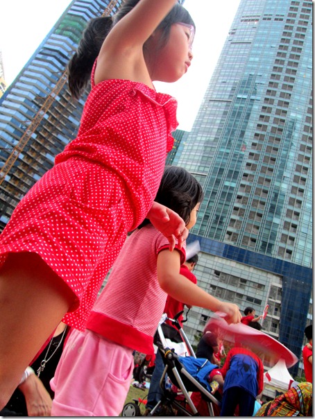 Check out the turn out. Everyone was just hanging around, having a good time. The only pity I felt was that there was no food stalls. We had to go buy food elsewhere before settling down. But because the event was 'Baby's Day Out', we saw many young parents with babies and young toddlers, and the parents mostly cooked and brought along porridge and cereals for their babies. My kids were probably one of the oldest there. :)