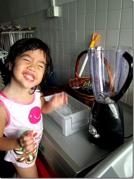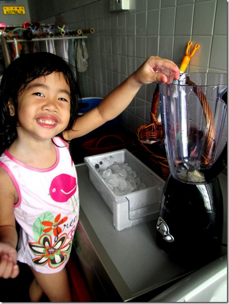 Then, it's simply putting in the ice cubes and kiwifruits into the blender, then pour in a cup of water and blend away! It's so simple your kids can help too!