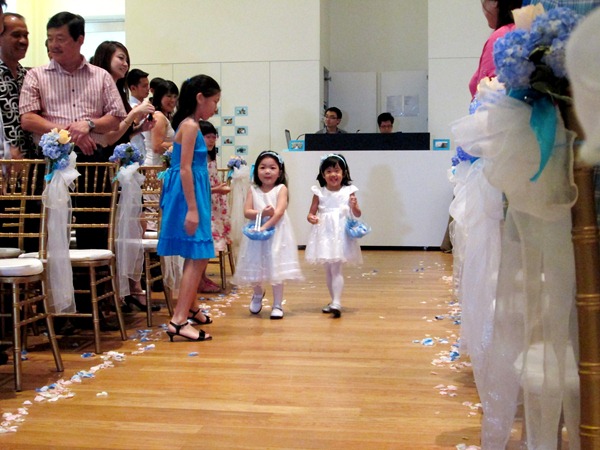 I was busy running around making preparations for the wedding, so I handed my camera to my trustworthy friend, Jason, who took all the lovely shots for me. [Pssst: There is even a video clip of the flower girls at the end!! @@]