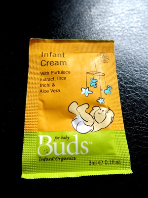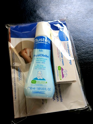 The skincare products for the baby include Buds Infant cream and Mozzie-clear cream and Mustela vitamin cream. There is also a wooden block toy crocodile from Eploof Wooden Animal Noe (Noah's Ark) Set.