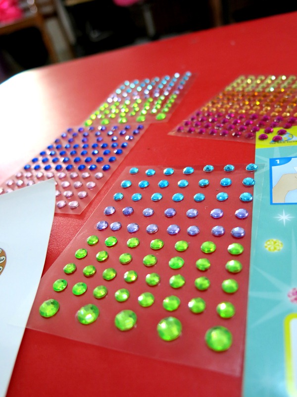 There were two sheets of decals with numberings and different coloured crystals have different number codes as well. All Joey needed to do was to paste the correct coloured crystal onto the decals and she'll have pretty blinged decal stickers!
