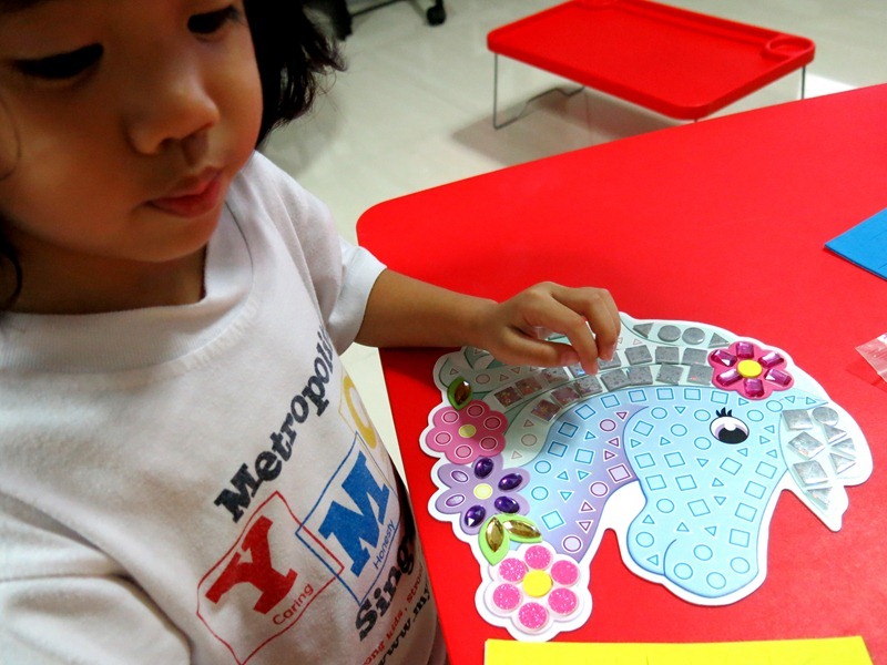 This project is suitable for 3 years old and up, so Jayne had no problem doing it alongside with Joey. It was good practice for her as she differentiates between the colours and shapes, and attempting to stick them on the way they're supposed to be.