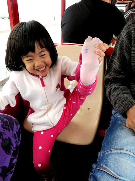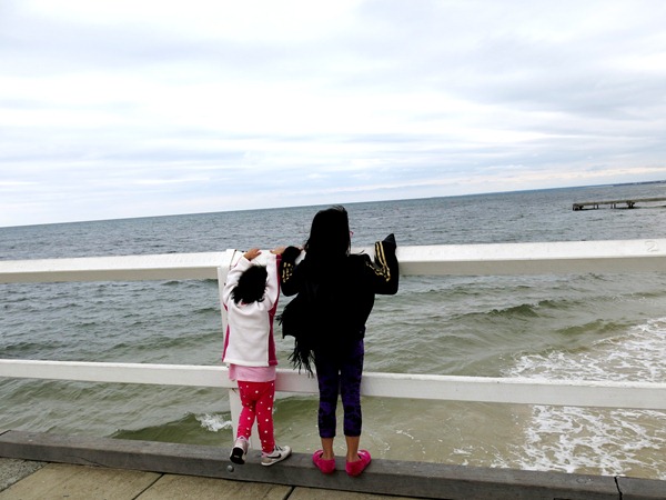 A train tracks run the entire length of the jetty, and while waiting for our train, the kids were goofing around, as usual! The wind was so strong, but even though we were very cold, it felt so refreshing!