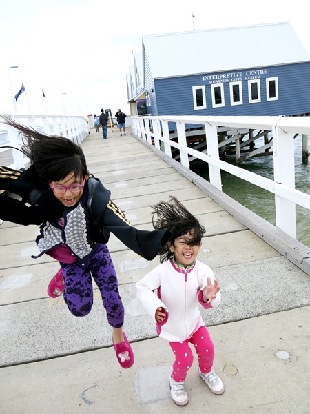 The touristy thing to do at the Busselton Jetty was to take the train ride down the jetty and visit the Underwater Observatory. It was expensive at AUD75 per family, but we did it anyway. Tourist dollars are easy to earn! But the kids were really looking forward to it, oh well.