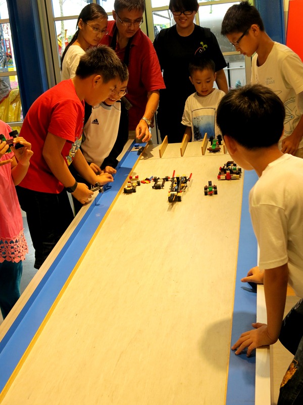 The kids were thrilled and proud to see their own creations racing down the slope! =D I think this is a great idea, because it encourages the kids to be creative and definitely boosts their confidence when they see their own creations run well.