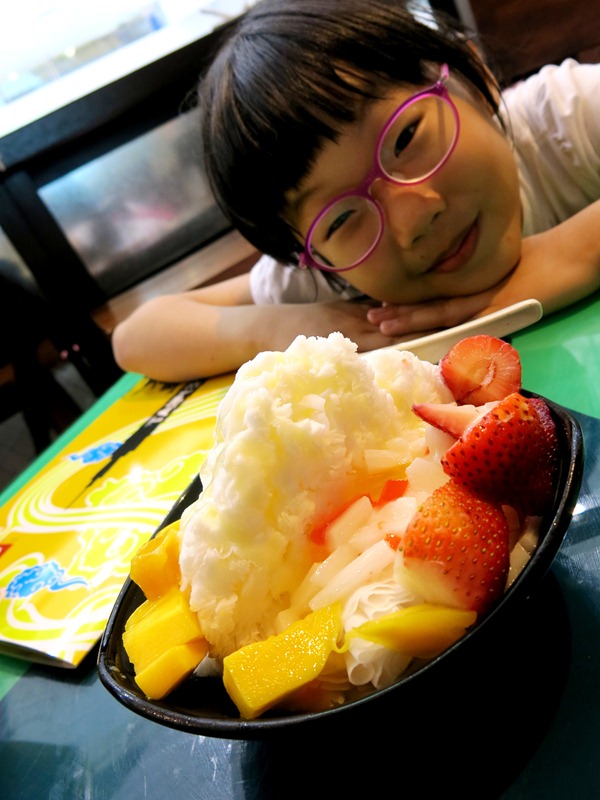 Check out what we ordered. :) Shaved ice with mixed fruits!