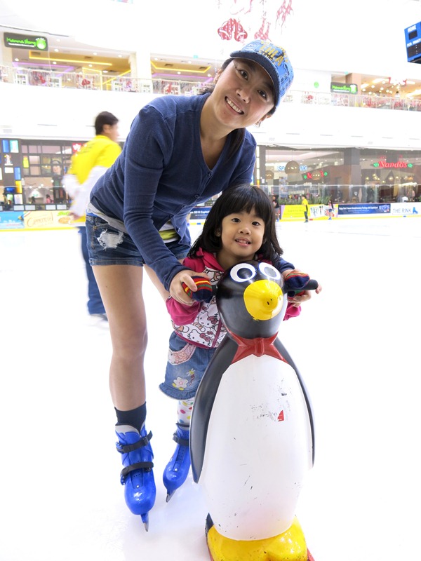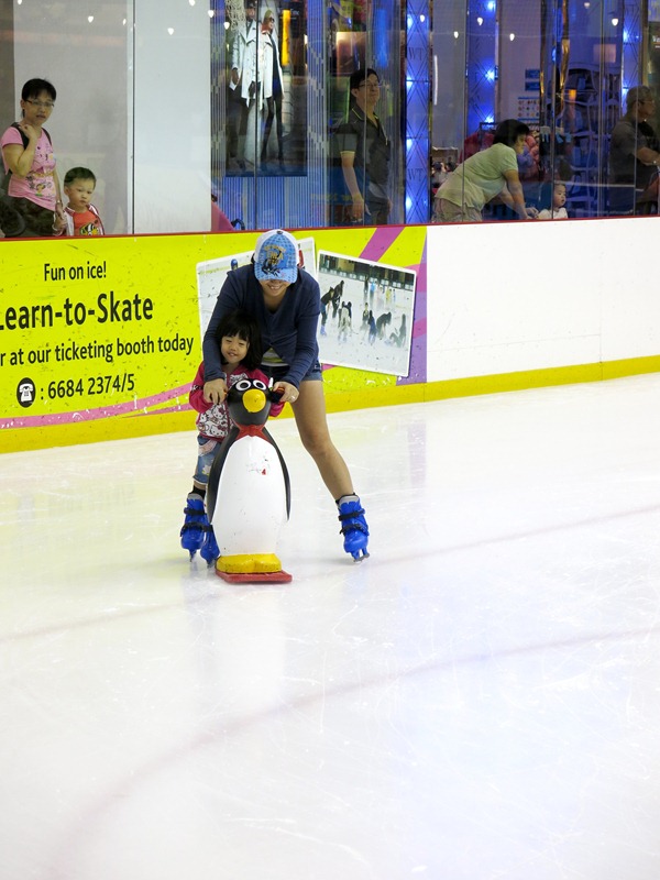 These penguin Skating Aids are for rent at $10 per two-hour slot for children below 1.2 metres (or aged below 10 years) and they really helped the girls learn how to ice-skate without the fear of falling down!