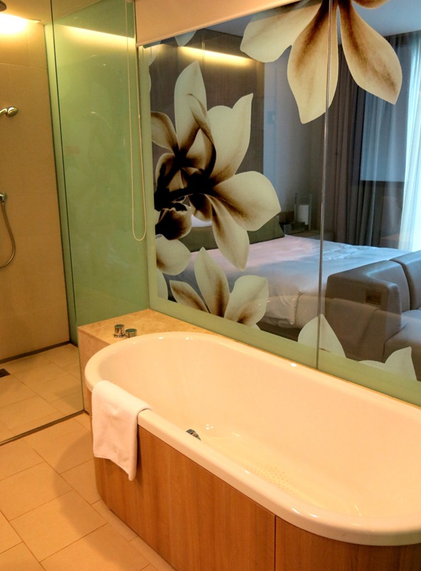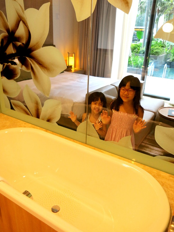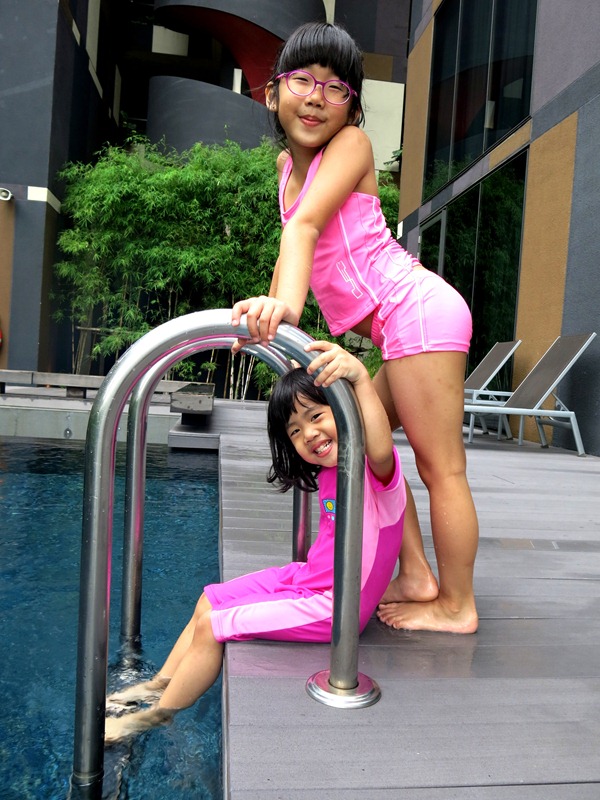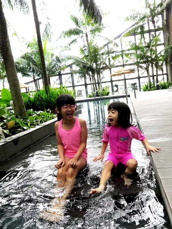 Did you notice the swimming pool at the background?? YES! Our room's located on Level 3, and our glass door opens right up to the swimming pool! I can't think of a better idea for a family staycation than this. Throughout our stay, the glass door was practically opened all the time, and the kids spent a lot of time on the poolside. I love it that in a luxurious hotel like this, we could have a resort feel as well. What a perfect combination.
