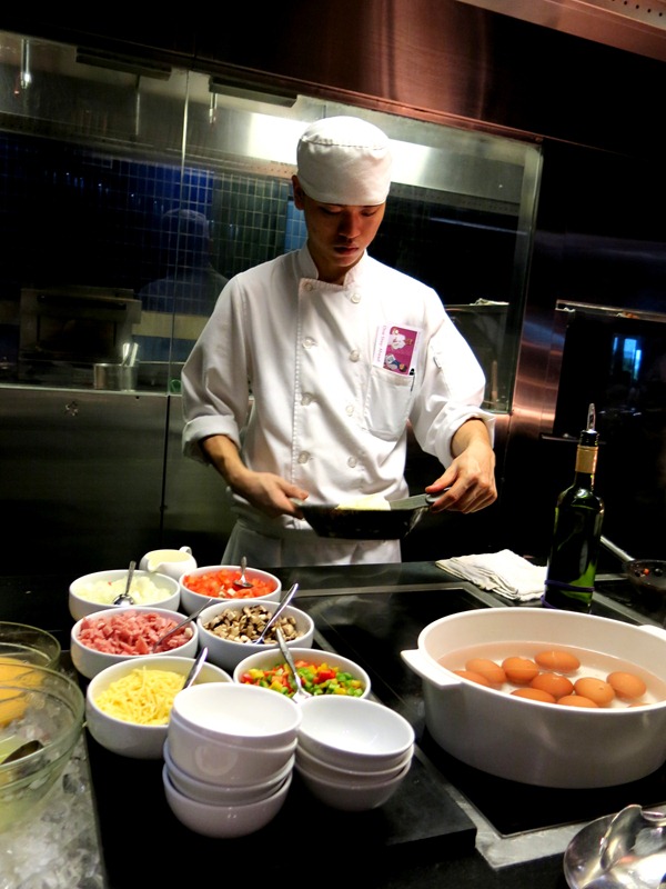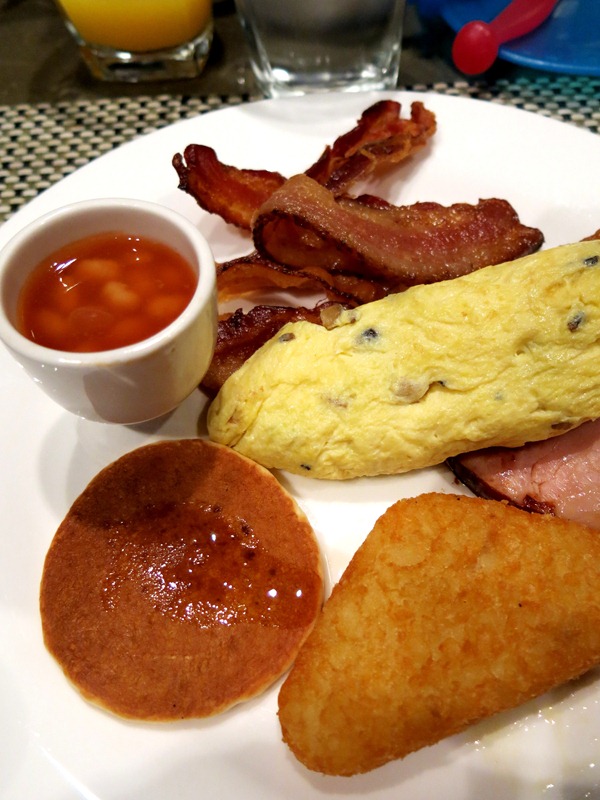 My breakfast consisted of bacon, ham (super yummy!), omelette, warm baked beans & hotcakes (plus another two or three more servings later on of Nasi Lemak, curry chicken, naan, salads & fruits =P) SO YUMMY!