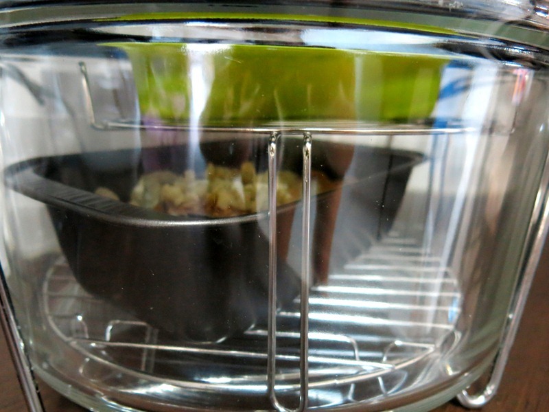 My friend, Google, tells me that a halogen oven works on the theory of infra red waves, and it's able to cook things using lesser power (thus saving electricity) in a shorter time. Whole roast chicken can be done to perfection in 30 minutes flat, and when I tried baking cakes, it's all done in 20 minutes. The other good thing about halogen oven is that it's made of glass and you can watch the entire cooking process, and adjust your temperature and timing accordingly as you go along.