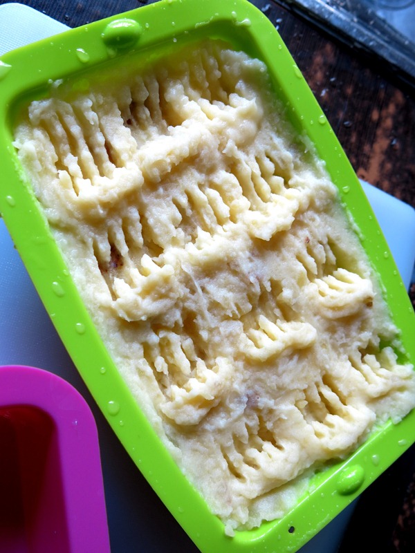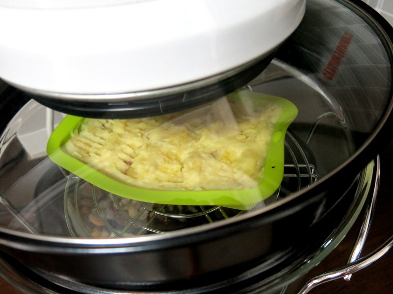 There is a tier stand that came along with the oven, so I can bake everything in one sitting. Perfect if you ask me. That's my fish at the bottom, and the mashed potatoes at the top.