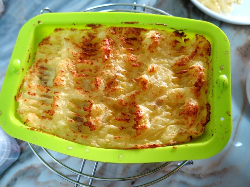 Then subsequently, I attempted to cook lunch for my kids using the halogen oven. Made mashed potatoes and baked fish with mushrooms. Turned out quite nice too!