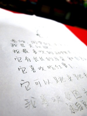 Apparently, the Chinese Teacher told the students that they were going to have a 'Show & Tell' the following week and they were to share about their favourite animal. The 'Show & Tell' will be graded upon 20 marks, and according to Joey, the teacher said that for every sentence said wrongly or missed out, she would deduct marks accordingly. Talk about instilling fear in the poor kids. Sigh.