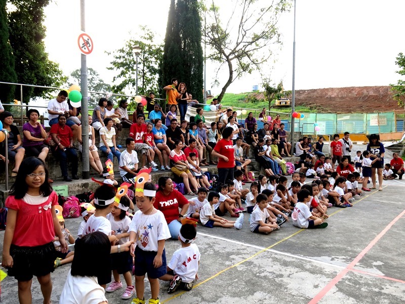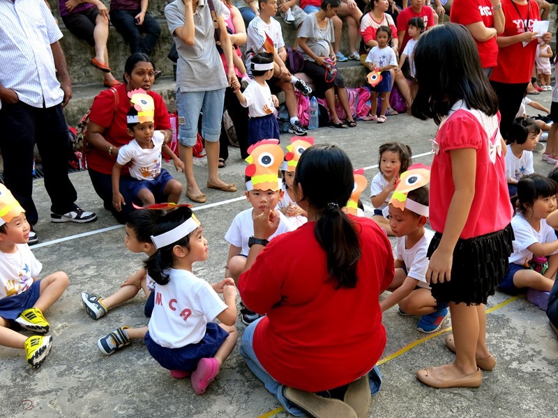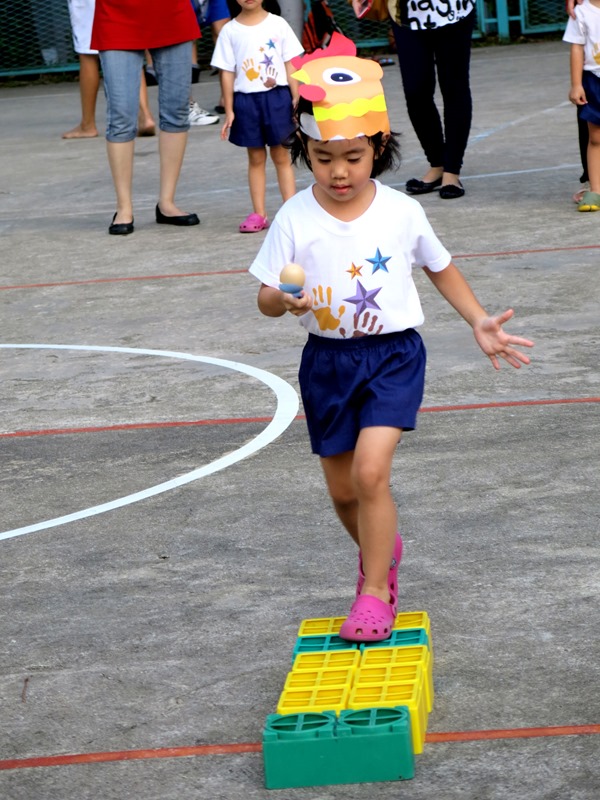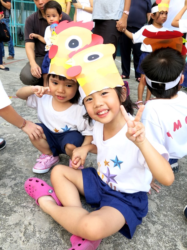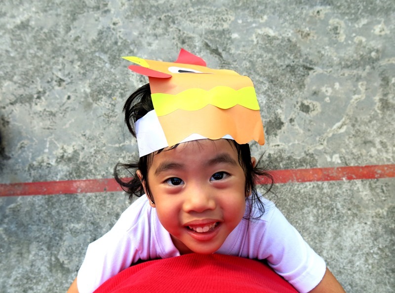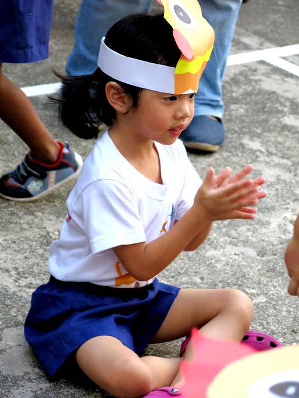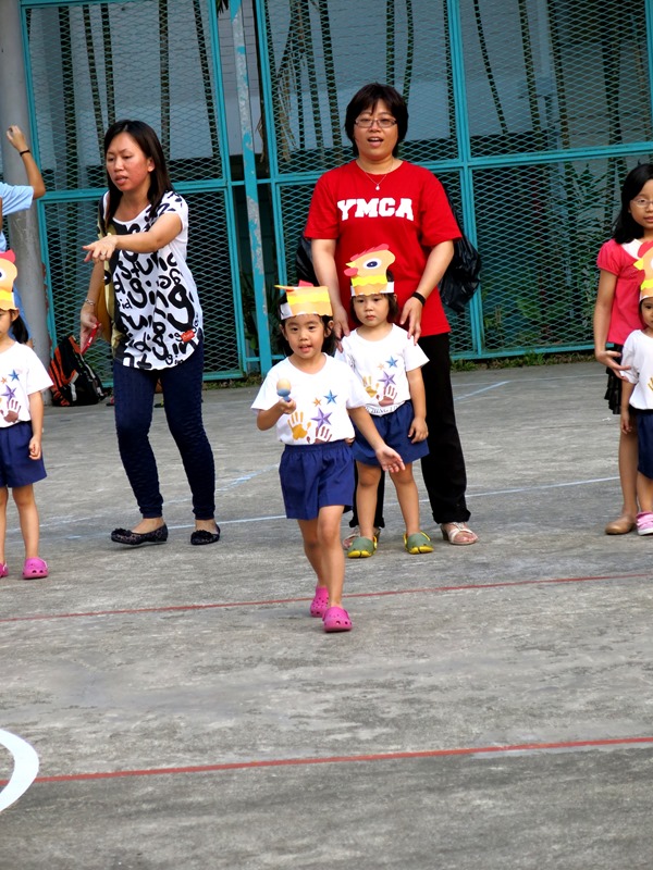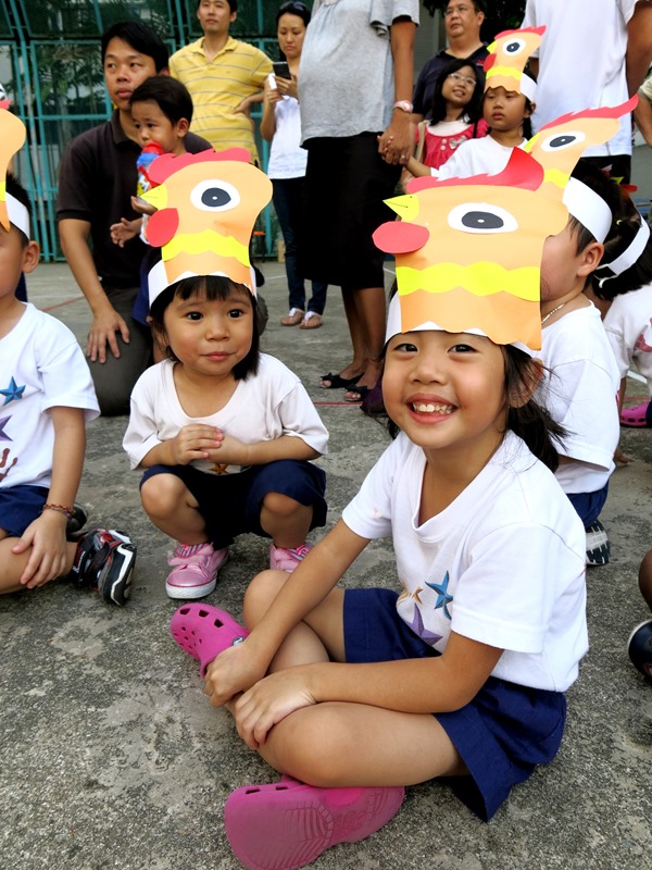 The various classes took turns to play games, and Jayne's N2 class was to play the chicken & egg game - which explains the chicken headgear on all their heads. =P This girl is called Huixin - I've heard Jayne mention her umpteen times. I know everything that she's done in school. LOL!