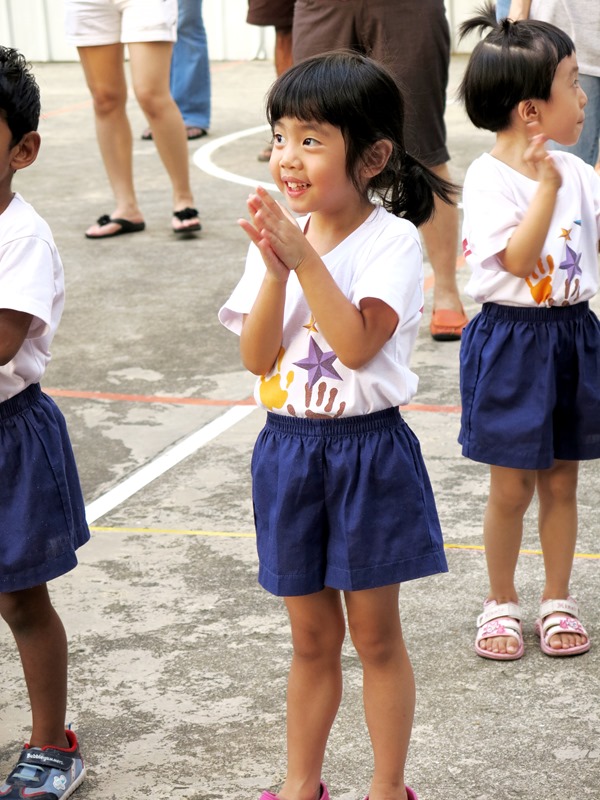 It was so fun watching my girl - She takes instructions extremely well. While many of the kids ran to their parents and refused to leave their side, she listened to her teacher and stayed where the kids were supposed to. She just couldn't stop waving to us all the time. Haha!