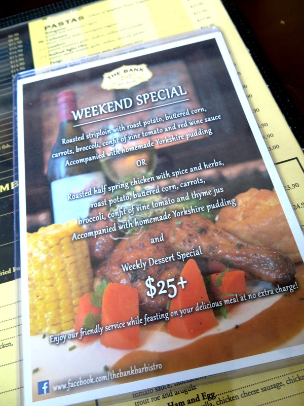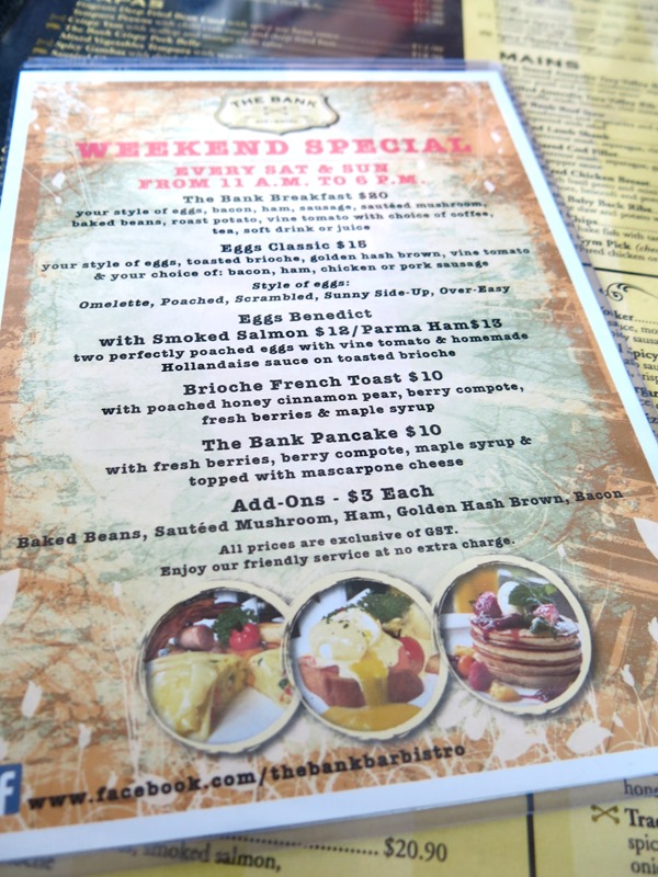 As I was mentioning earlier on, the Bank Bar & Bistro has a new brunch menu. As you can see, the prices are pretty reasonable and there are many options to choose from.