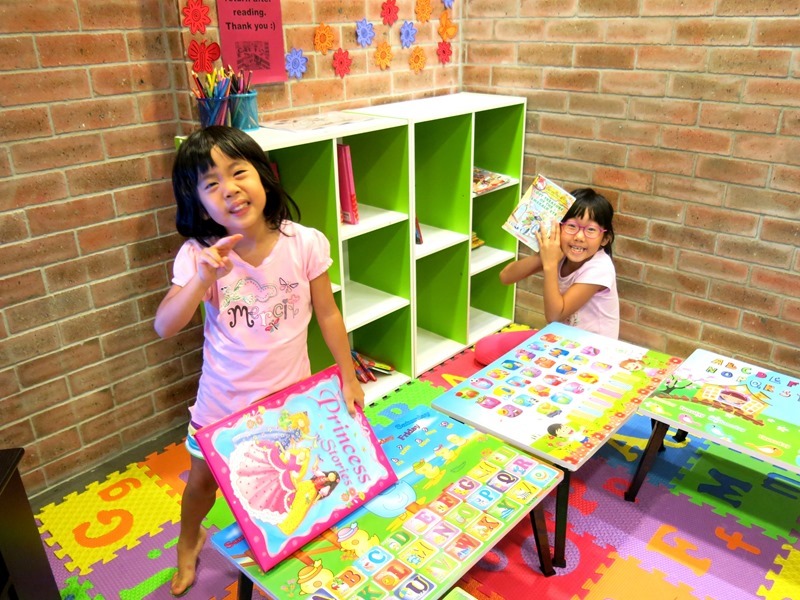 After a hearty lunch, the girls couldn't wait to start the paper puppet class! The class was held at the kids' corner in the restaurant - when no programmes are happening, kids can hang around at this corner as well because there are storybooks, paper for doodling and even a TV screen that plays cartoons. The good thing about this corner is that it is visible from most of the indoor tables, so parents can keep an eye on their kids while they continue dining.