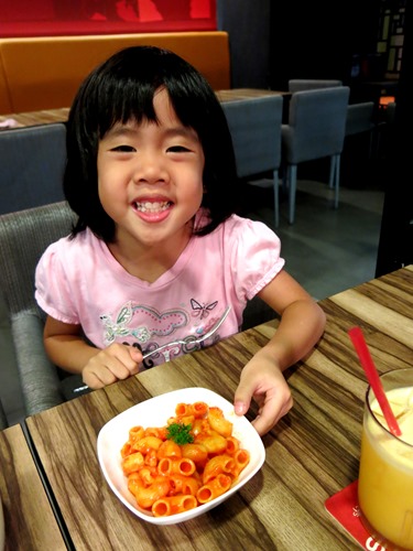 The kids chose off the kids' menu - Pasta with Tomato Sauce ($9.50+) & Sausage with Fries ($9.50+), and they were served with a complimentary fresh fruit juice each.