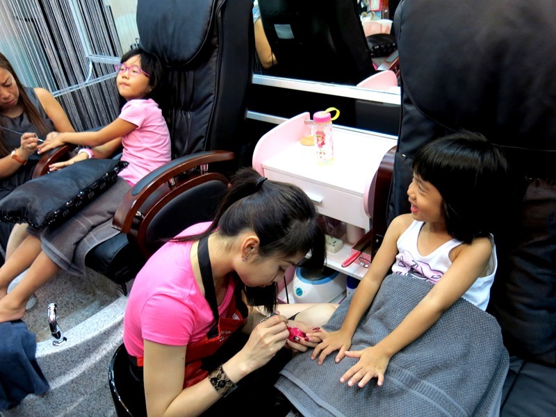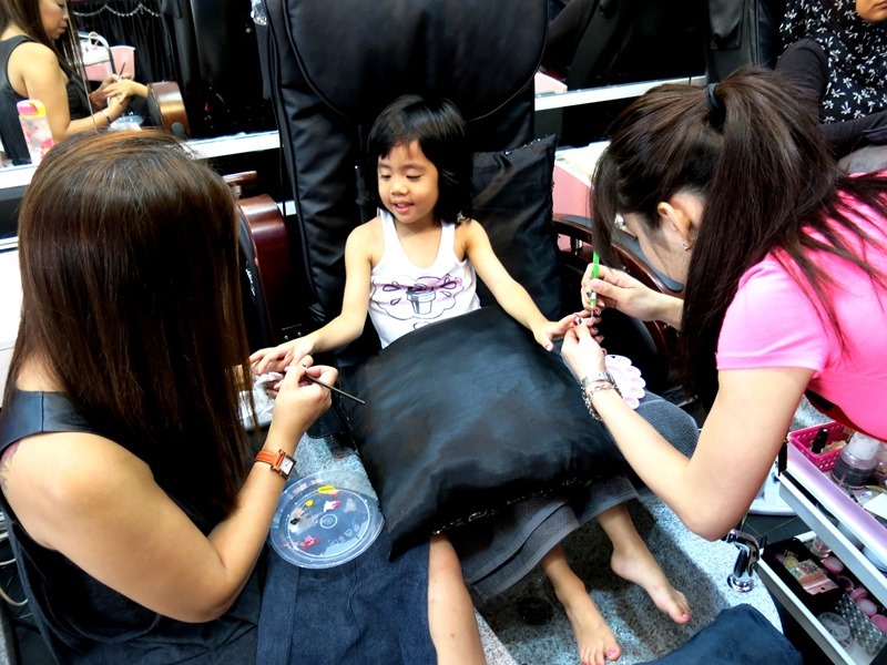 The girls got even happier when they heard that the manicurists were going to do nail art for them instead of just one solid colour! I was excited to know what designs they could draw on their super small nails! That must require good skills!
