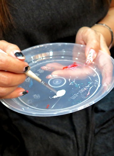 What a challenge it must be for the manicurists to paint such tiny nails, but they were patient and kept chatting with the girls to keep them from becoming restless. :)
