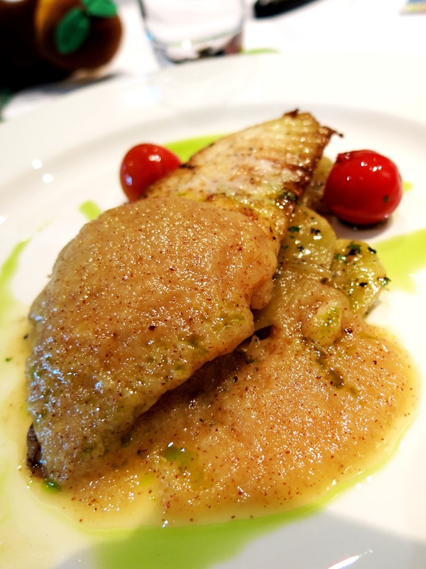 We had a choice of main course between lamb & fish, and we ordered one of each. Hubby loved the lamb cutlets - it was chargrilled to perfection drizzled with the refreshing kiwi fruit relish.