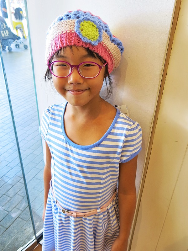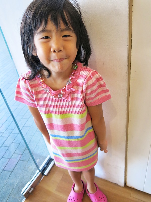 Joey really liked this blue striped dress with a baby pink patented belt. It was a really sweet casual dress. Do you like her crochet hat by the way? It's her first time wearing something like that and I thought she could carry it off pretty well. :)