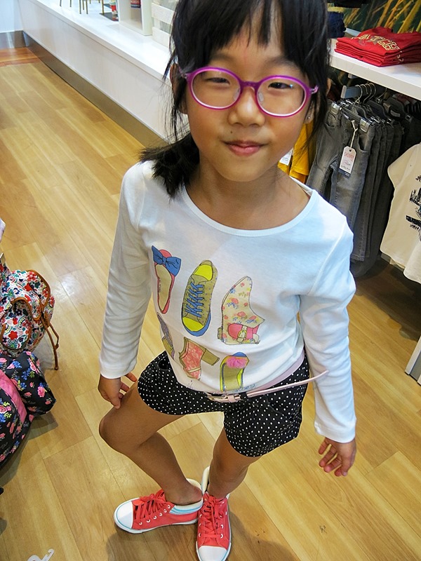 The store's neatly categorized by age group, so it was easy to navigate to the right places. The girls wasted no time at all - They immediately dashed to the shelves and started choosing clothes that they like. I better start keeping a tight rein on these girls - They have every potential to morph into compulsive shoppers if I don't keep them in check. :P
