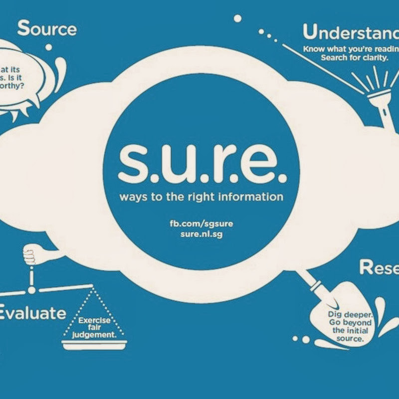 The National Library Board (NLB) recently launched the SURE Campaign, which I thought was a pretty interesting campaign. Using the acronym of S.U.R.E - Source, Understand, Research & Evaluate, NLB hopes to encourage everyone to rethink about the huge load of information we receive on a daily basis from the internet, mobile devices and social media, and decide if every piece of information we receive is authentic and trustworthy.