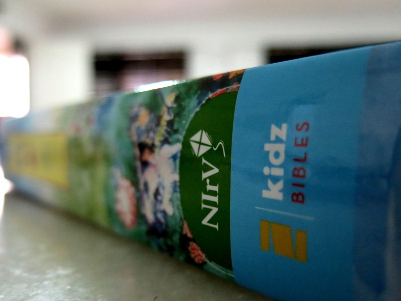 We were advised by the Children's Church teachers to get her a NIrV bible (New International Reader's Version) for easy reading as a start. I didn't even know there is such a version, haha! Joey's bible is a study bible, so it is very thick and heavy. But I reckon since she only needs to bring it to church once a week, it should be fine?