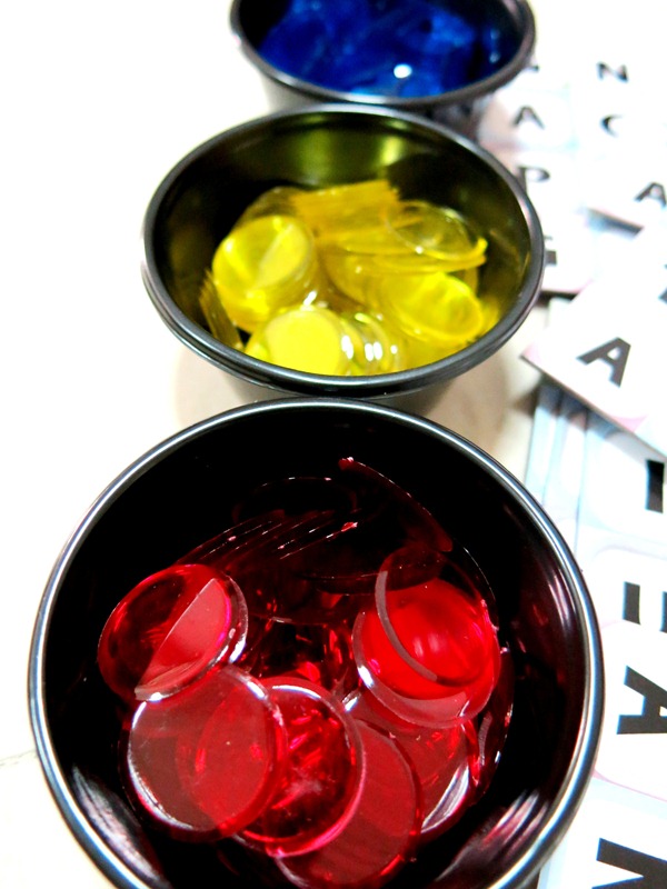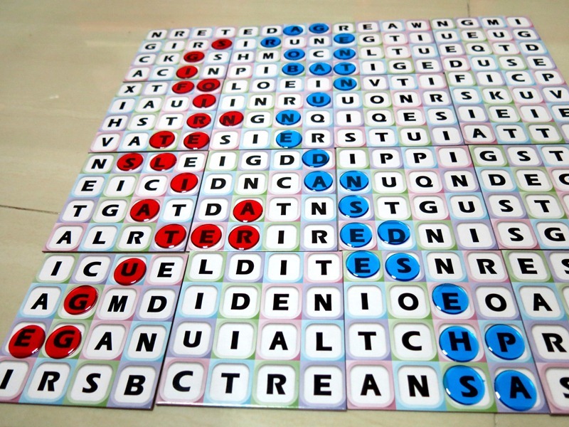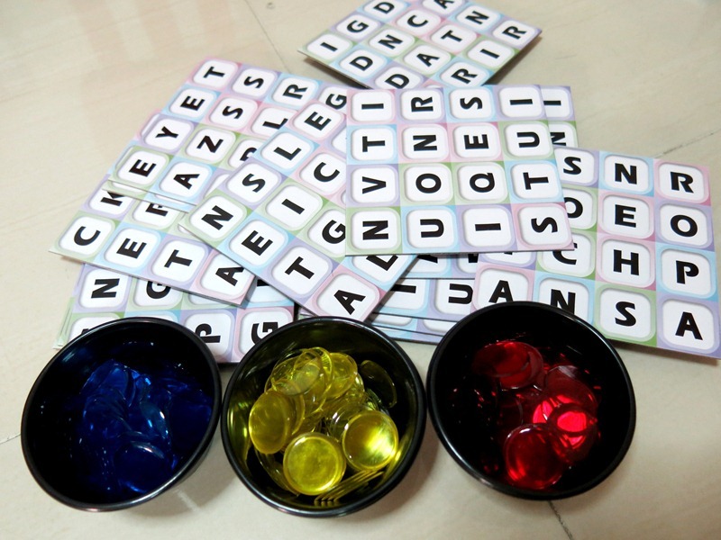 There are three different coloured chips provided so either 3 players can pit against each other, or form 3 teams if you have more players. To win, all you need to do is to form words on the board from one end of the board to the other end, either bottom to top or side to side, WITHOUT breaking the link between the words.