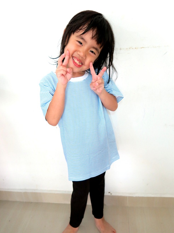You might have noticed that the tees look a little big on her, because I asked for one size bigger, thinking that she can wear it for a longer period of time. Kiasu mum syndrome at work here, yup. =P