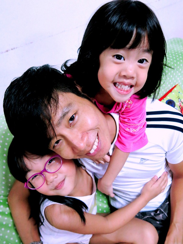 It was raining heavily that day, so being stuck at home, the girls thought it was a neat idea to bring their chairs to the kitchen right outside the toilet (Don't ask) and read their storybooks. It was bewildering and funny at the same time, but no real harm done, so I reckon I let them. Sometimes when we get bored at doing the same thing all the time, making small changes to things such as location and method brings the joy back in again. Check out the smiles on the girls' faces - They said it all. :)