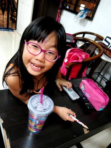 The girls were a little lost when we started. They were not used to the concept of 'freeplay crafting'. Usually, they will be guided along during art and craft sessions, and to give them free rein to create whatever they like using whatever they wish is not so easy. But I love this idea! I think kids should be given the space to create and design what they can think up, and use available materials to translate it from idea to actual. In my opinion, this is how creativity can be honed and improved.